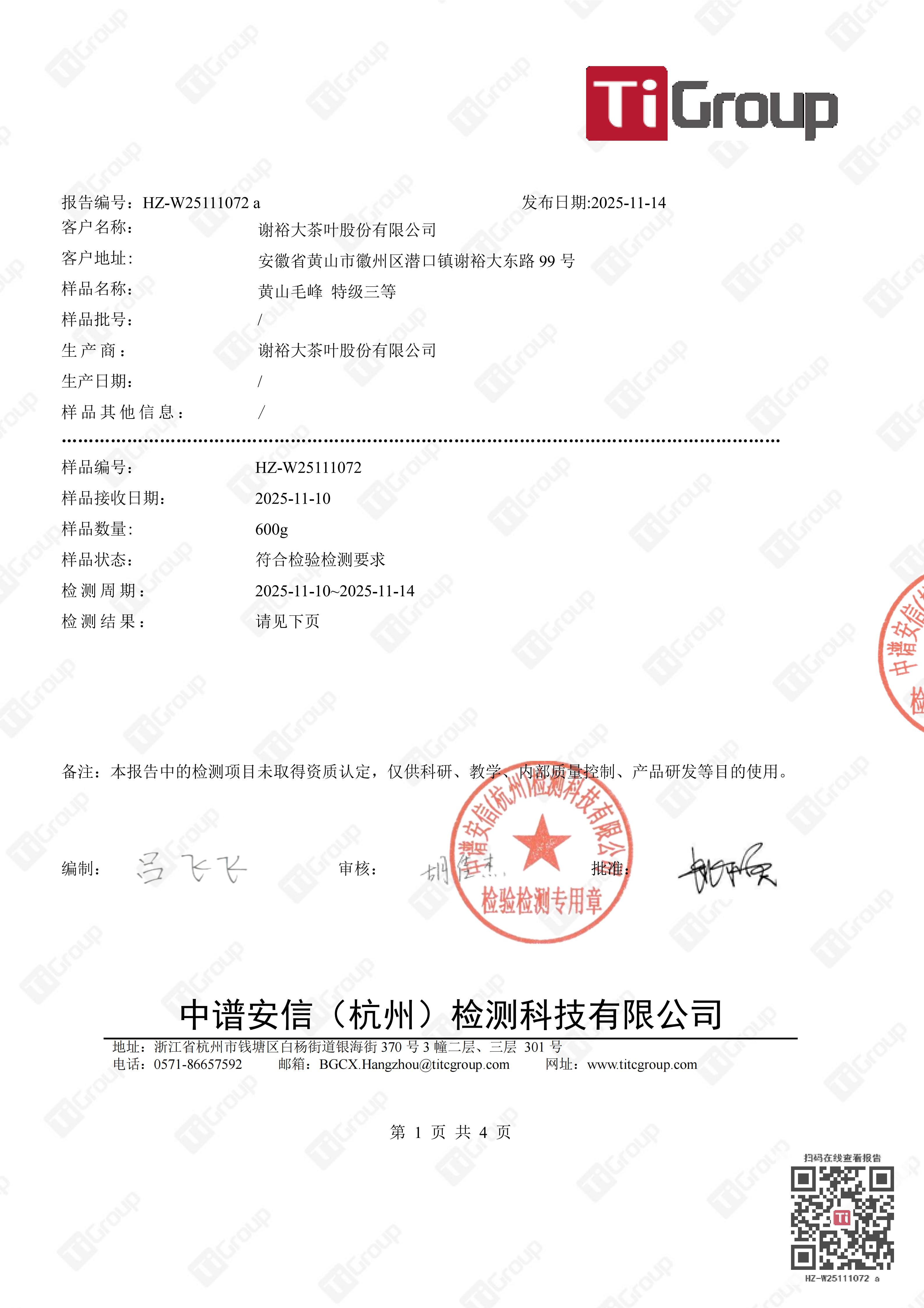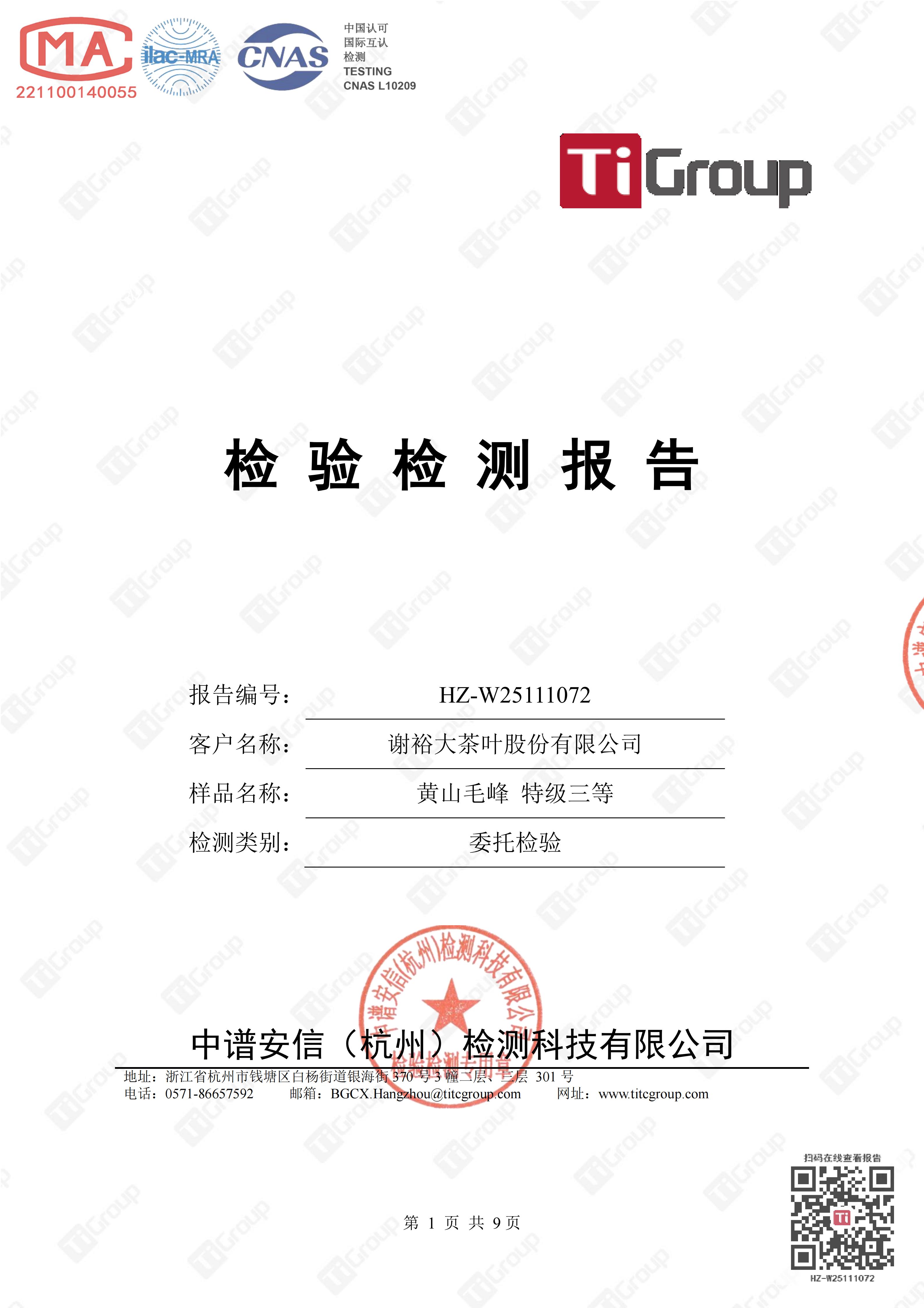 【每天一杯】产品质检报告(黄山毛峰 特三)