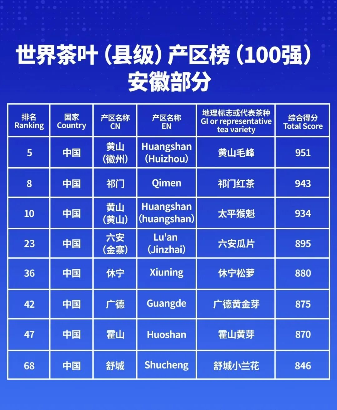 榜单显示,安徽省共有7个茶叶企业品牌入选世界百强,8个茶叶产区入围世界茶叶县级产区百强。其中,黄山毛峰位列世界茶叶县级产区榜单第5位,祁门红茶、太平猴魁均跻身世界前十,充分彰显了黄山茶产区的卓越品质。