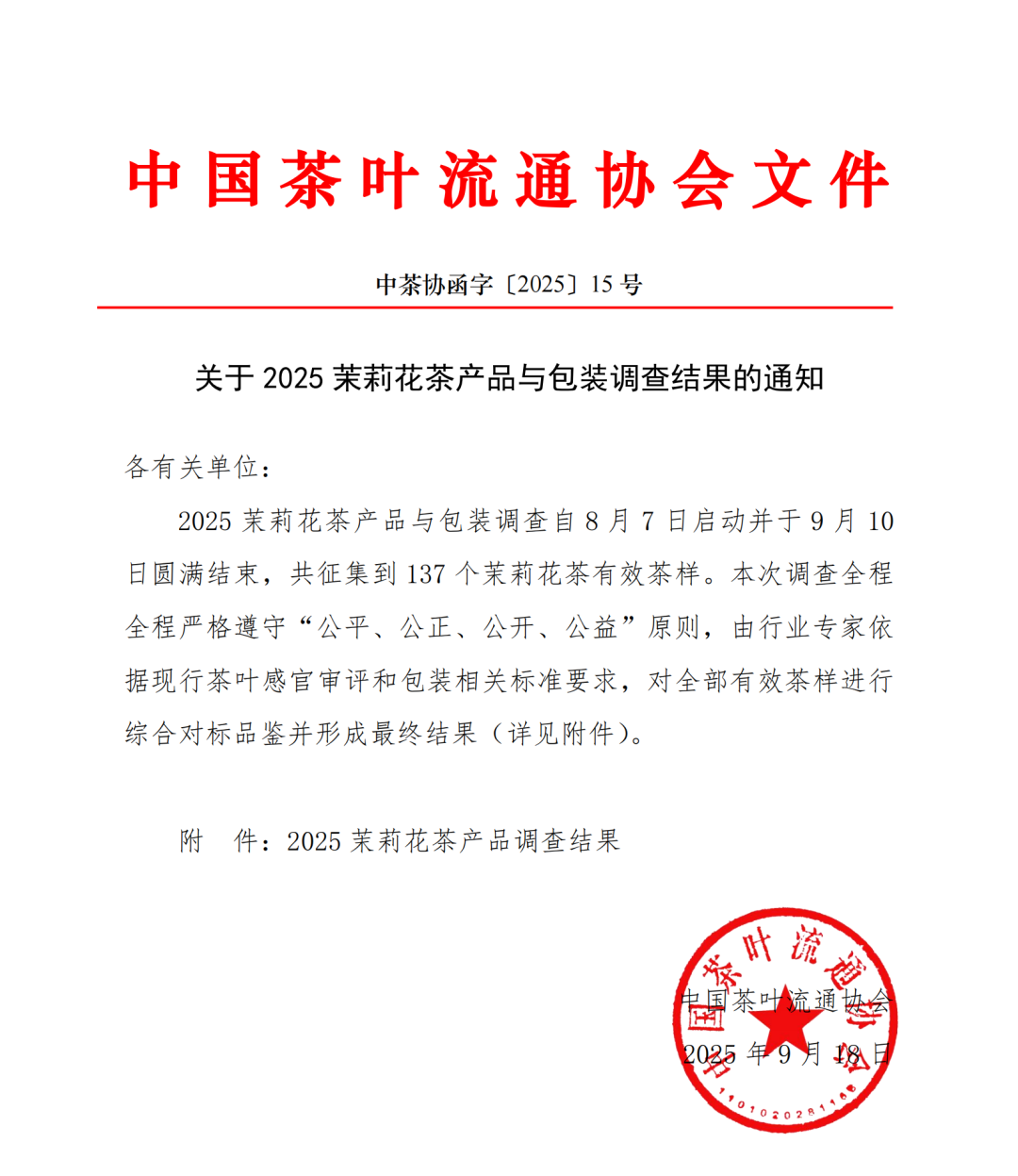 日前,由中国茶叶流通协会主办的“2025茉莉花茶产品与包装调查推选”结果正式揭晓,谢裕大选送的“茉莉花茶”再次从全国百余款参评产品中脱颖而出,获得“四星产品”认证,彰显了百年茶企的卓越品质与品牌实力。